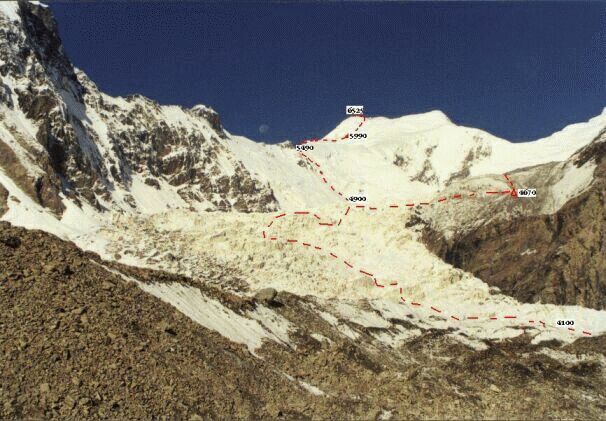 Бонингтона (5465,2Б) - рад. выход через пик 70- летия МАИ (6982) на вост.