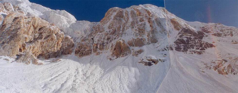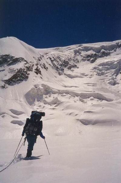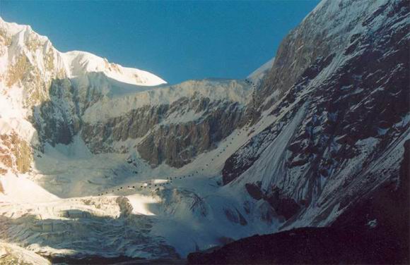 юго-западную стену пика Военных Топографов, открывающуюся в верховьях
