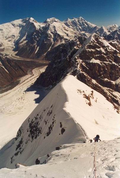 Восточным Шатром и, практически не спускаясь вниз на ледник Тугбельчи,