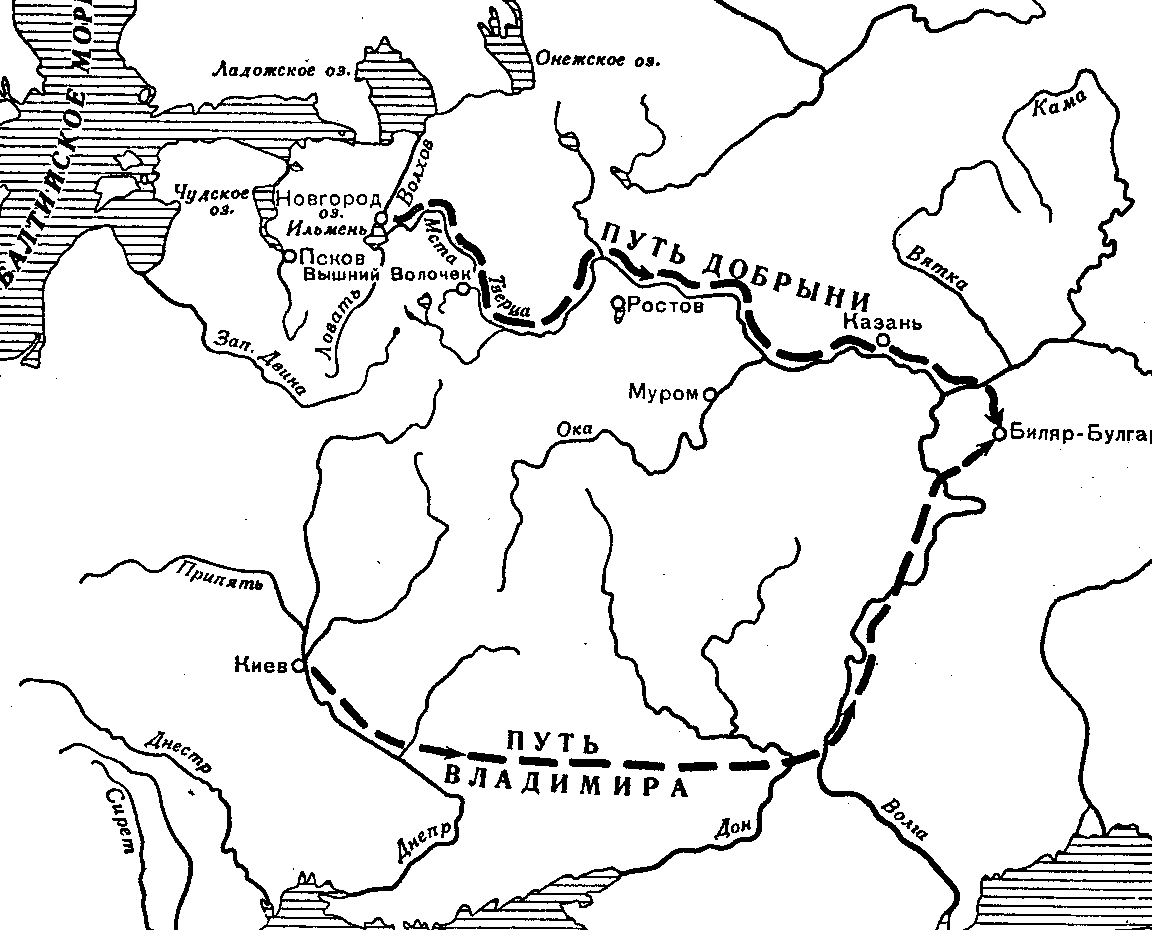 местам, где в X веке жил и действовал Добрыня - прототип героя русских былин