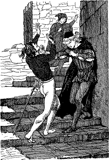 отскочил и так ударил его по руке, сжимавшей шпагу, что толстяк покатился по