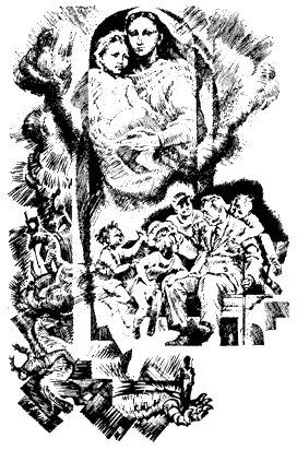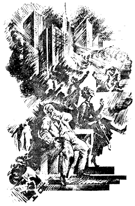 перевязи. Внезапно видение оживает, слышна короткая, прерываемая стрельбой