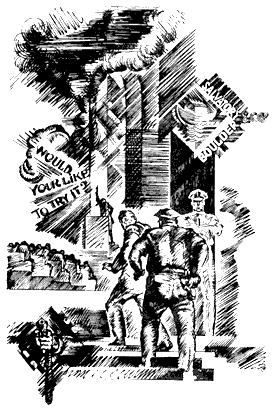 воздушных тревог, грохота обвалов, визга падающих бомб, сигналов горниста к