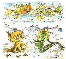 КОТЕНОК. Эх, как хочется узнать, что будет с этими плавничками! По-моему, у нас с тобой не получается фантазировать.