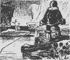 в ней, повернувшись спиной к берегу. Матросы пытались согнать его на берег.