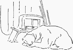 одеялами и приемником. И трое белых медвежат в клетке, которые жалобно
