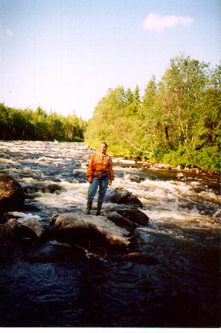 Вход в нужный нам залив читается с ходу. Проходим небольшой простой порожек (деталей за давностью времени и простоты в голове не осталось). Дальше - небольшое озецо и справа начало протоки. Встаем на очевидной стоянке на берегу озерца. Вечером идем смотреть протоку - по хорошей дороге доходим до моста. Здесь стоит группа москвичей на Тайменях. Идут весь наш маршрут с выходом в реку Толванд, но вверх! (не посмотрели на перепады высот уровней воды на озерах, а все эти Н-метровые уступы на карте не обозначены). Вспомнили про них, когда проезжали на обратном пути то, что осталось от реки Толванд.