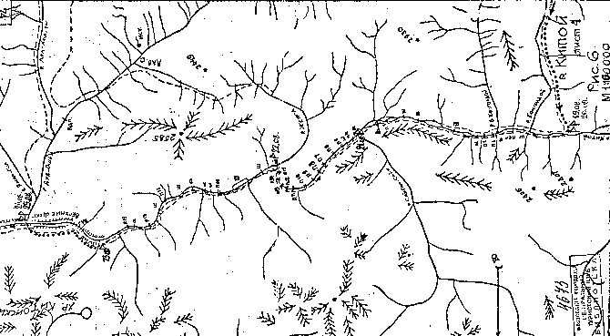 Общая длина пешей заброски при данном варианте - 40-50км.