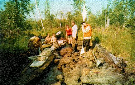 удачно (из-за малой воды) пытавшиеся идти по Ниж. Кум-озерке - волок