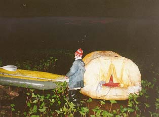 Не очень радостное занятие- вылезать в три часа ночи из т?плого и сухого ПСНа под дождь. Но пришлось. Кирюше пришлось рассказать нам, куда надо грести. Течения в этом месте почти не было.