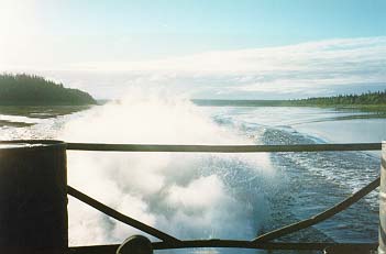 В 7.15 встали на завтрак в шести километрах от устья на левом берегу за островом. После завтрака вышли в 12.20. За время завтрака поднялся сильный встречный ветер. Если бы мы не гребли, то оказались бы выше по течению.