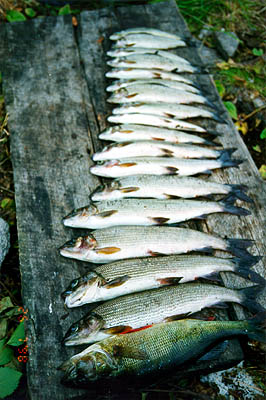 лежали где-то на "Хариусном", а днем ребята ловили рыбу сами. Результат был